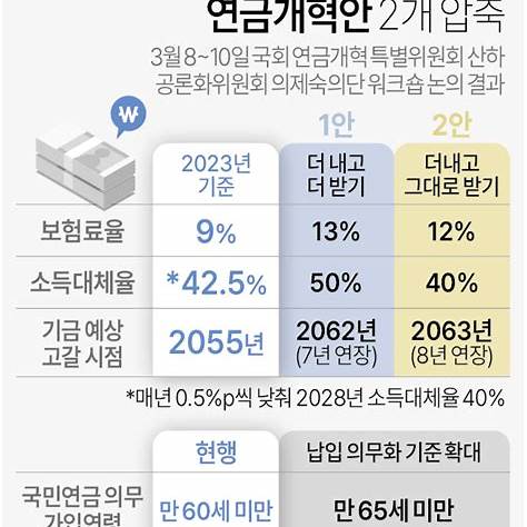 - 소득대체율 조정: 현재 40%에서 조정 여부 논의