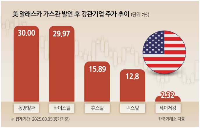 그는 한국에 “알래스카 가스관 사업에 참여해주길 바란다”는 입장을 밝혔고, 이는 즉시 관련 강관 기업들에 대한 관심으로 이어졌습니다.
