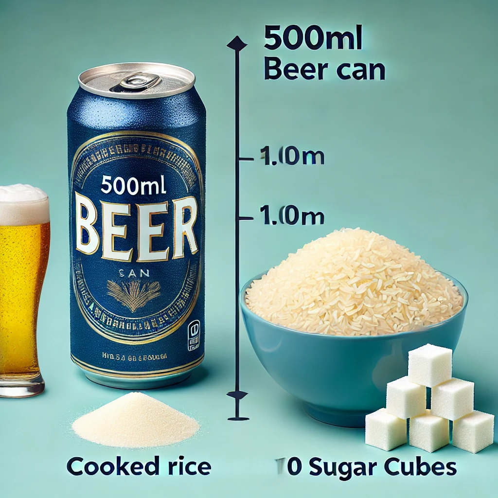 • 한 캔(500ml) 정도는 혈당 관리가 가능하지만, 2캔 이상 마시면 각설탕 10개 이상의 탄수화물을 섭취하는 것과 같습니다.