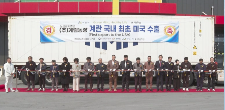 2024년 3월 7일, **충남 아산시 농업회사법인 ‘계림농장’**에서 생산한 계란 **33만 5,160개(약 20톤)**가 미국 동부 조지아주로 수출되었습니다. 이는 한국산 계란이 처음으로 미국으로 수출된 사례로 기록되었습니다.