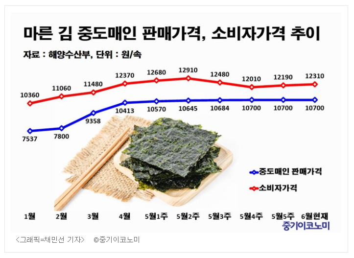 “수출 물량이 늘면서 국내 김 가격도 덩달아 올랐다. 원초 생산량은 줄고, 냉동 김밥 수요까지 더해져 수급이 타이트해졌다.” – [연합뉴스, 2024.03]