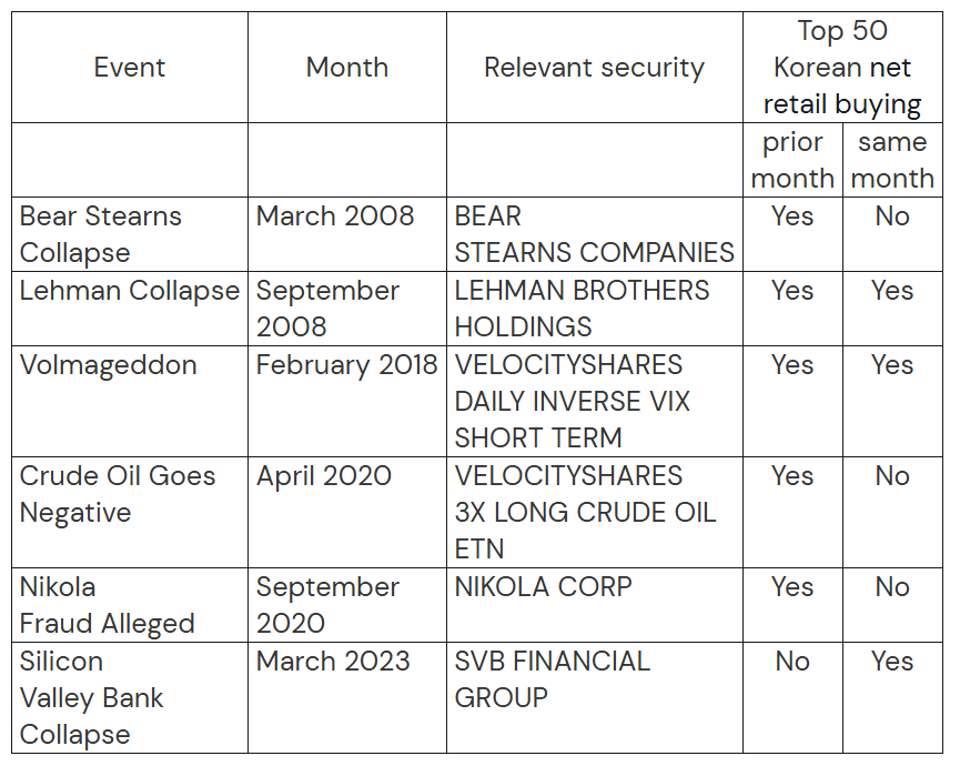 라몬트 부사장은 한국 투자자들이 과거에도 시장 붕괴 직전에 특정 종목을 집중 매수하는 패턴을 보였다고 경고했습니다. 예를 들어,