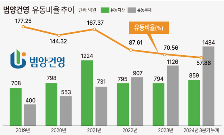 범양건영의 2024년 주요 재무 지표를 살펴보면 심각한 경영 위기를 확인할 수 있습니다.