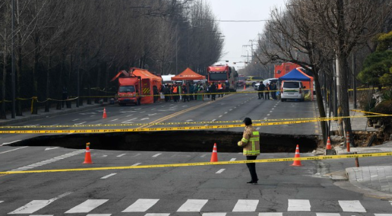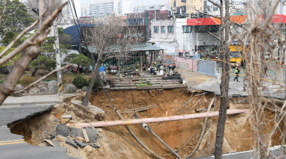 🇰🇷 서울 석촌지하차도 (2014) - 지하철 9호선 건설 중 지하 공동 발생 → 대형 싱크홀 발생