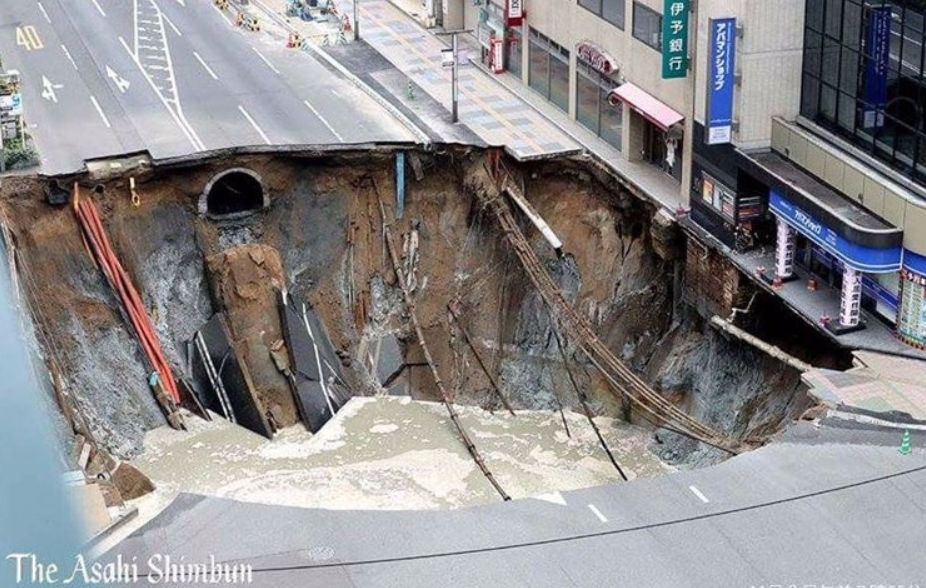 🇯🇵 후쿠오카 (2016) - 도심 지하철 공사 도중, 도로 한복판이 무너져 싱크홀 형성