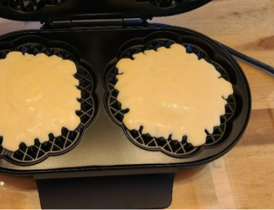 예열 시간은 약 3분 정도면 충분하고, 와플 한 판 굽는 데 4~5분 정도 걸립니다.