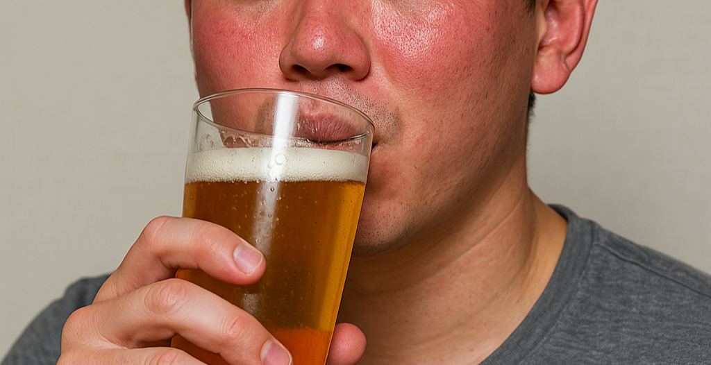 이 반응은 아세트알데하이드 탈수소효소(ALDH2)라는 효소가 부족할 때 나타나는데, 이 효소가 부족하면 독성 물질(아세트알데하이드) 이 몸에 축적되어 얼굴이 빨개지고, 심장이 두근거리거나 어지러움을 느끼기도 합니다.
