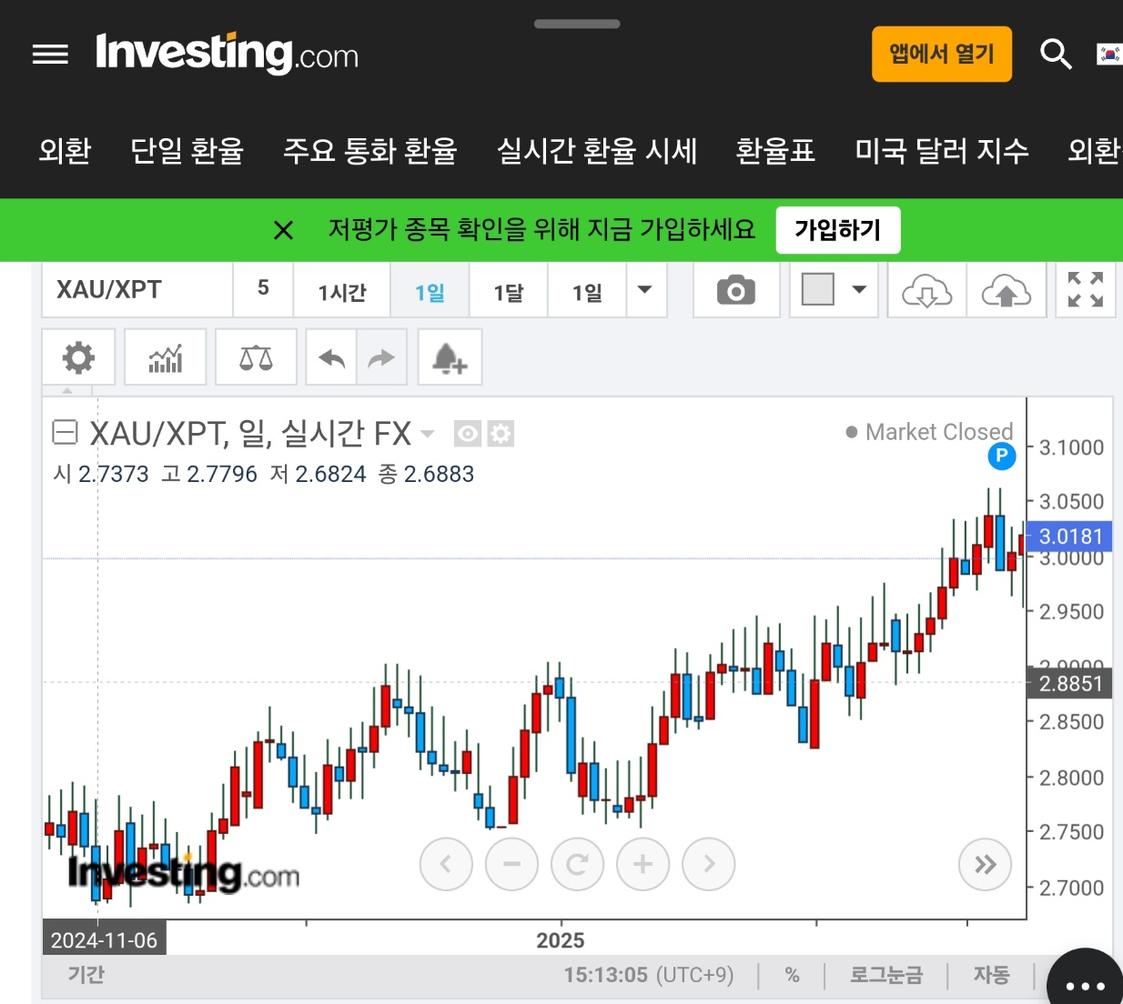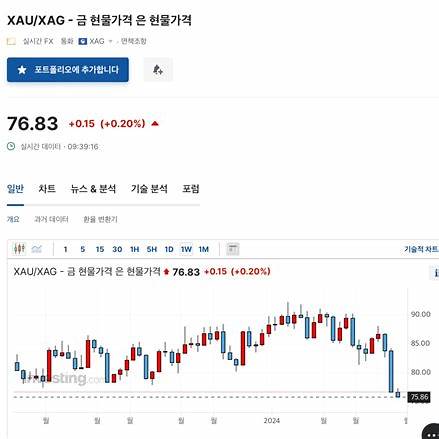 - 인베스팅닷컴(Investing.com): 인베스팅닷컴에서도 금은비를 확인할 수 있는 차트를 제공합니다. 이 사이트에서는 다양한 기간의 차트를 통해 금과 은의 비율 변화를 분석할 수 있습니다.