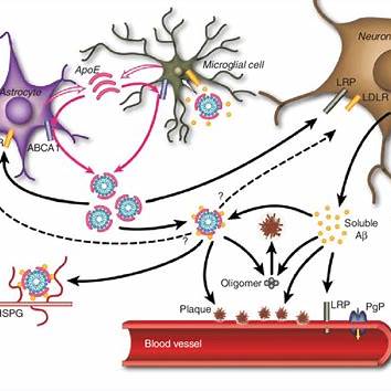 • APOE (Apolipoprotein E) 유전자는 뇌에서 지질 대사와 관련이 있으며, 치매 발병과 연관이 있음.