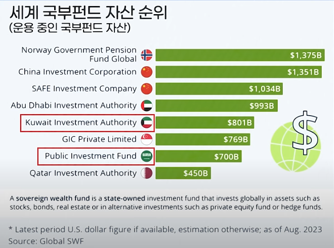 ✔ 사우디아라비아, 쿠웨이트 – 오일머니를 활용해 해외 주식, 인프라, 부동산에 투자