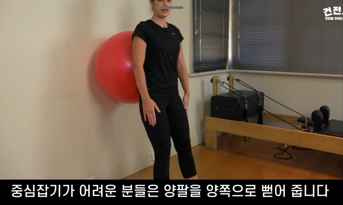 - 의자나 테이블을 잡고 균형을 유지한 채 시작하세요.
