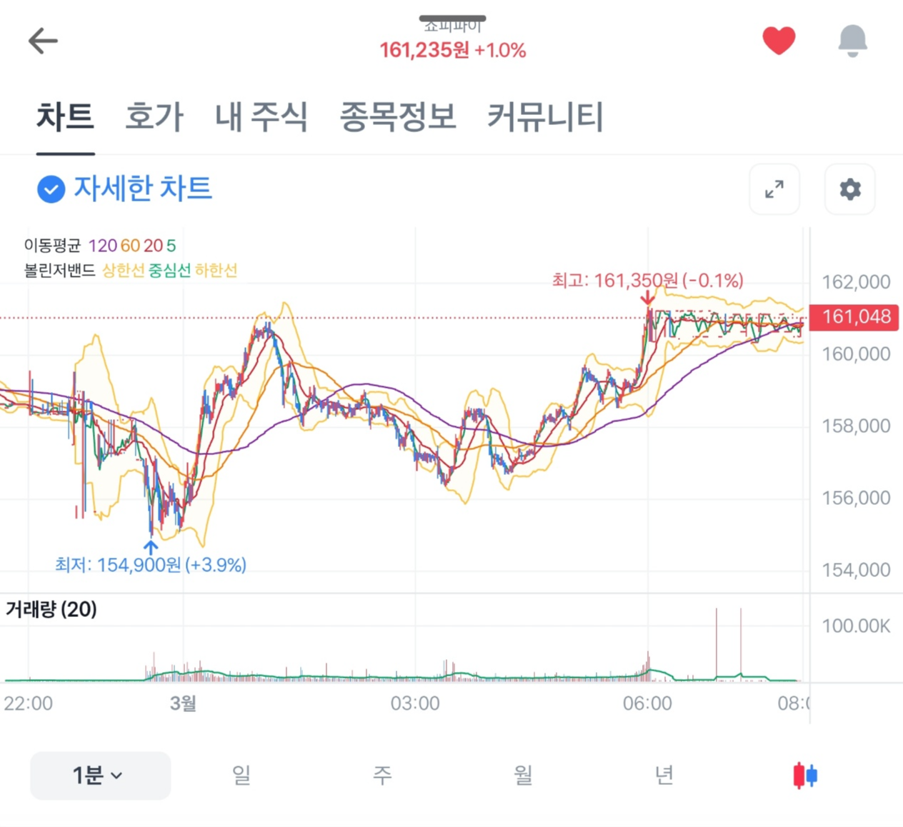 Shopify 주식 그래프 및 차트 분석